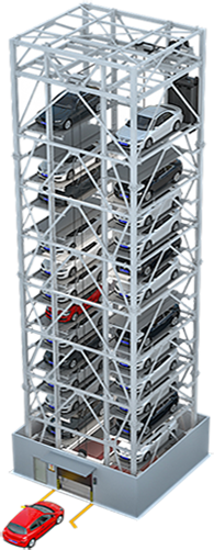 垂直升降類機械式停車設備亦可稱之為“塔庫”,主要通過升降裝置的升降和裝在升降裝置上的智能搬運器將車輛搬運至固定車位上,從而實現車輛的存取。